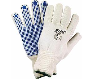 Handschoen nitras 6100 wit+ blauwe nopjes